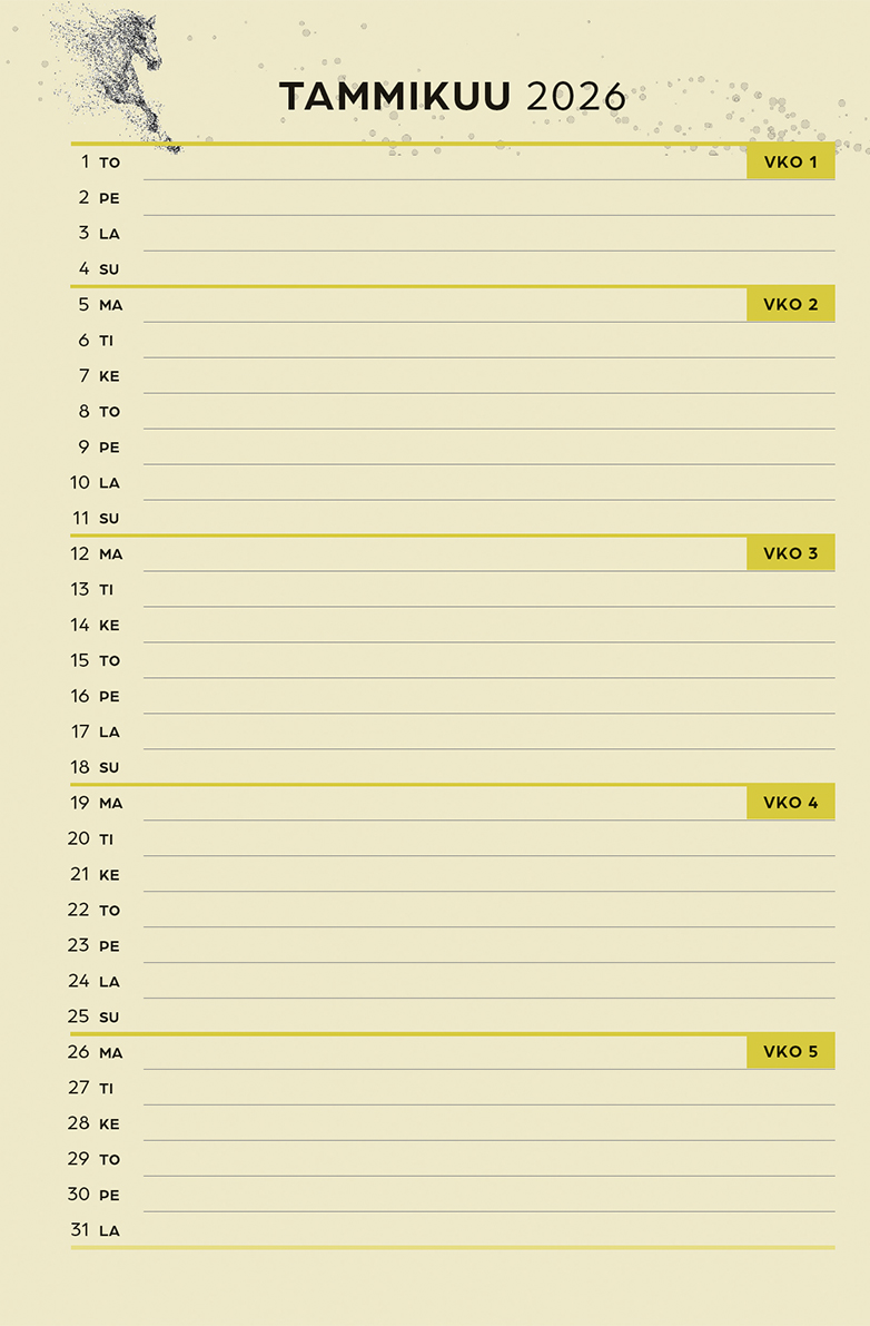 Hevosenomistajan kalenteria vuodelle 2026! 🐴💛
